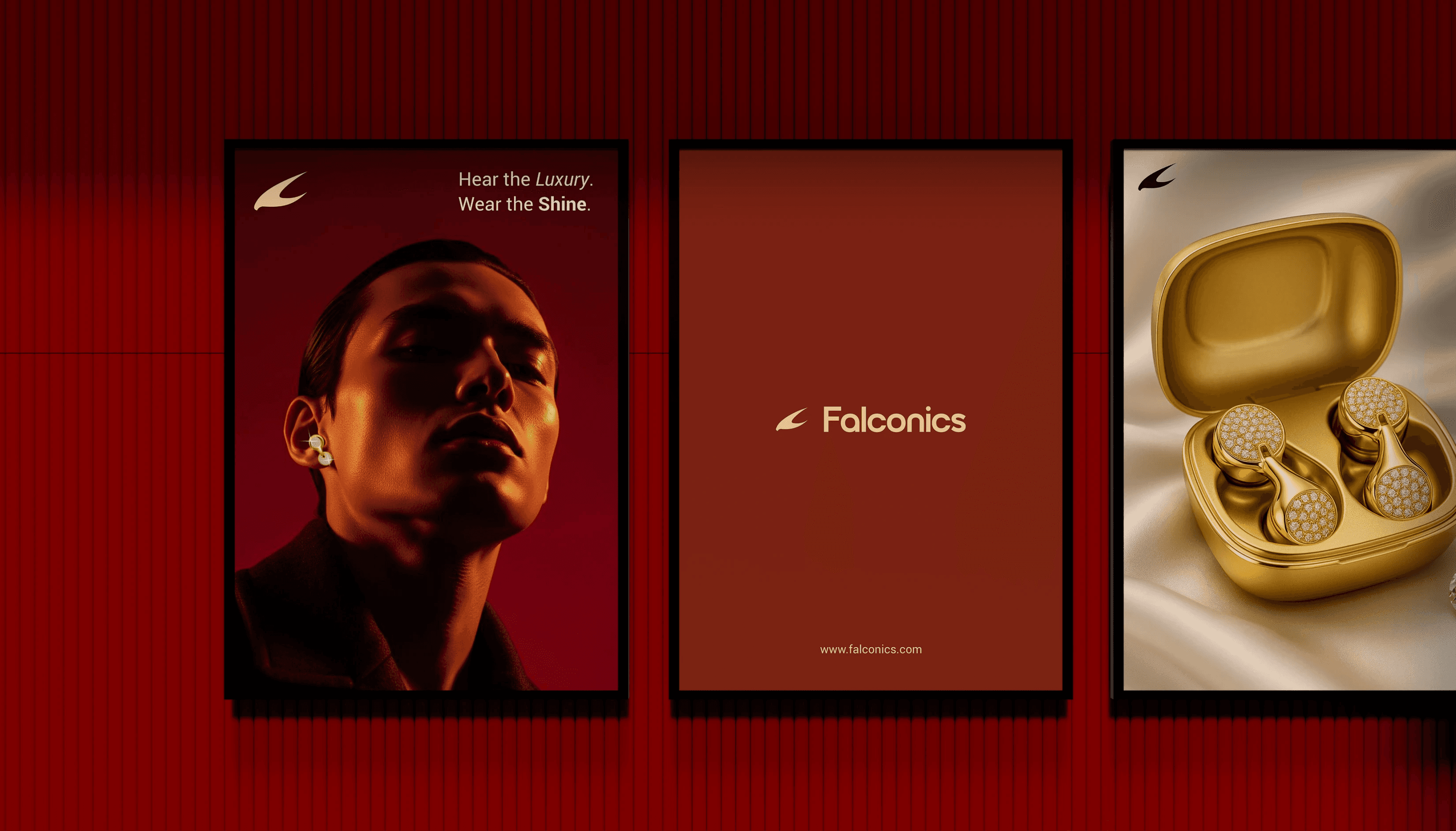 Falconics adopted a bold, gender-neutral branding system that positioned its jewel earbuds as universally premium and performance-driven. This inclusive identity broadened appeal, strengthened brand clarity, and contributed to increased customer interest and sales.